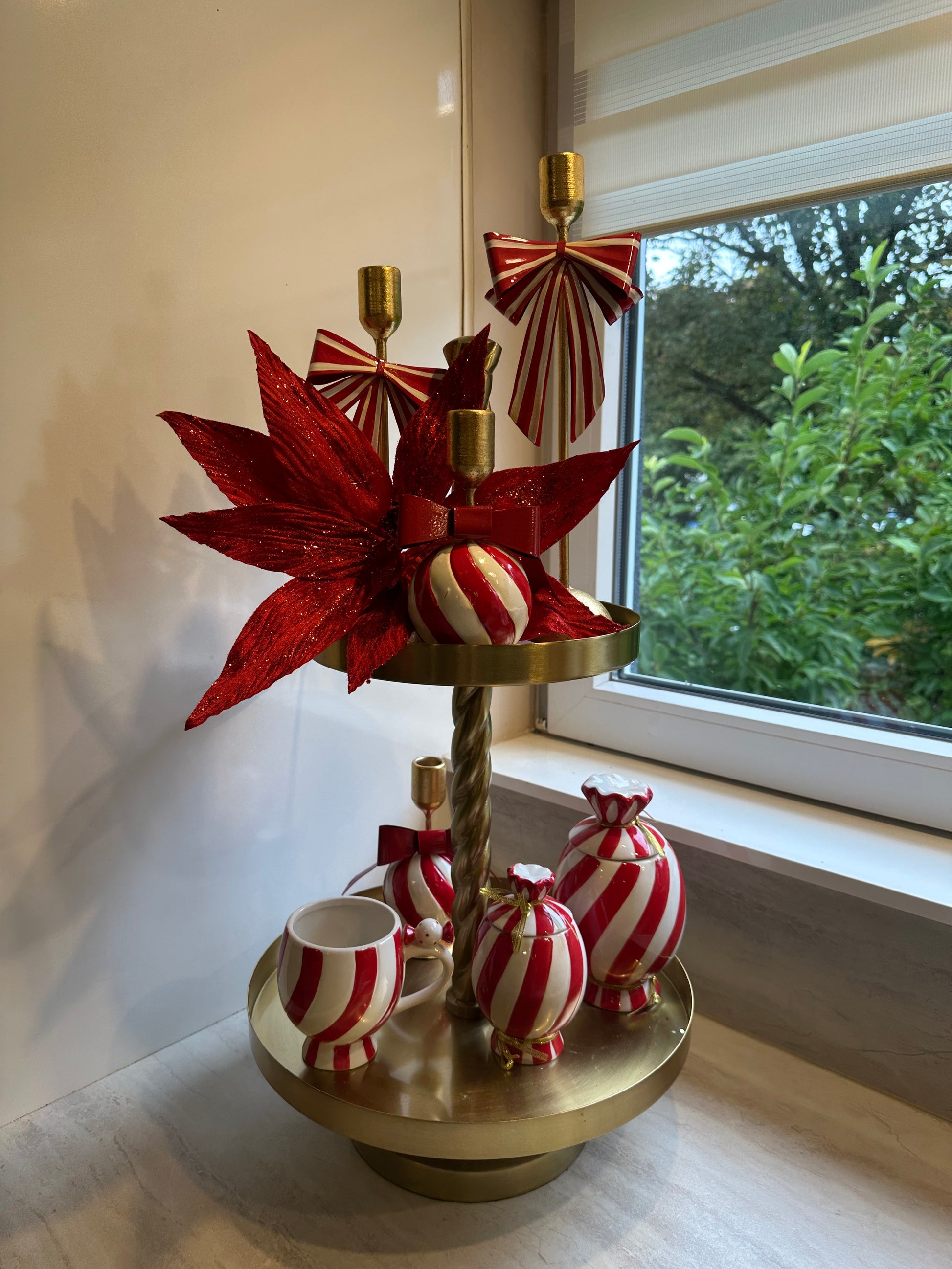 Die Goldline Weihnachts-Candy Kerzenhalter sind elegante Highlights für Ihre Weihnachtsdekoration. Im festlichen Rot-Gold-Design mit dekorativer Schleife gestaltet, bringen sie edlen Glanz und warme Stimmung auf Tisch, Sideboard, Fensterbank oder in Adventsgestecken.