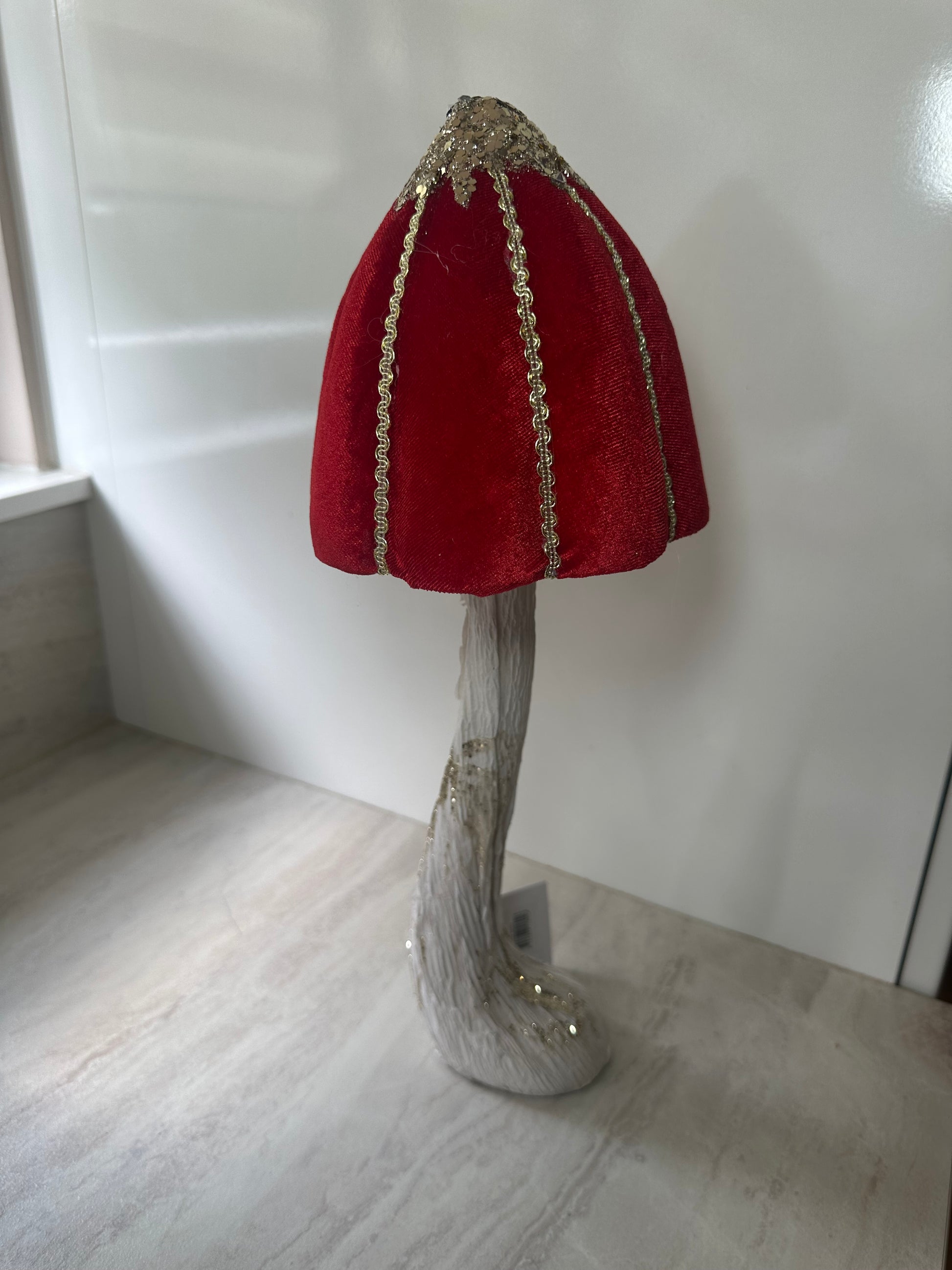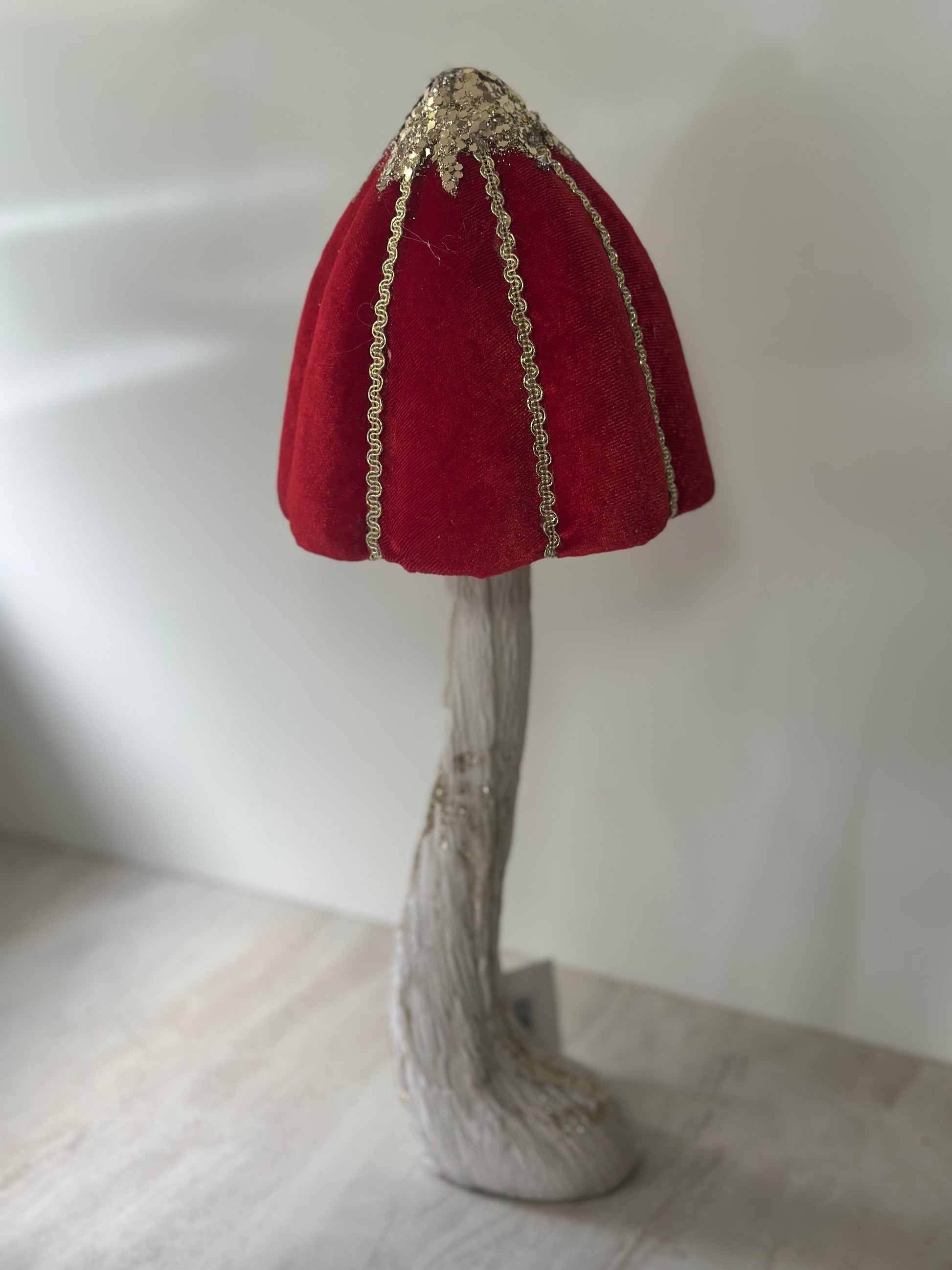 Goldline Deko-Pilz Samt Rot-Weiß mit goldenem Glitzer – 15 x 40 cm