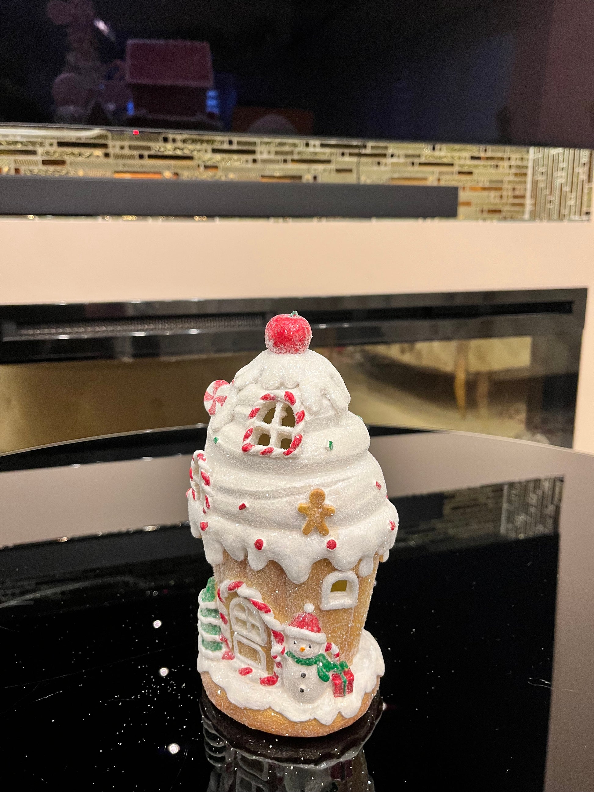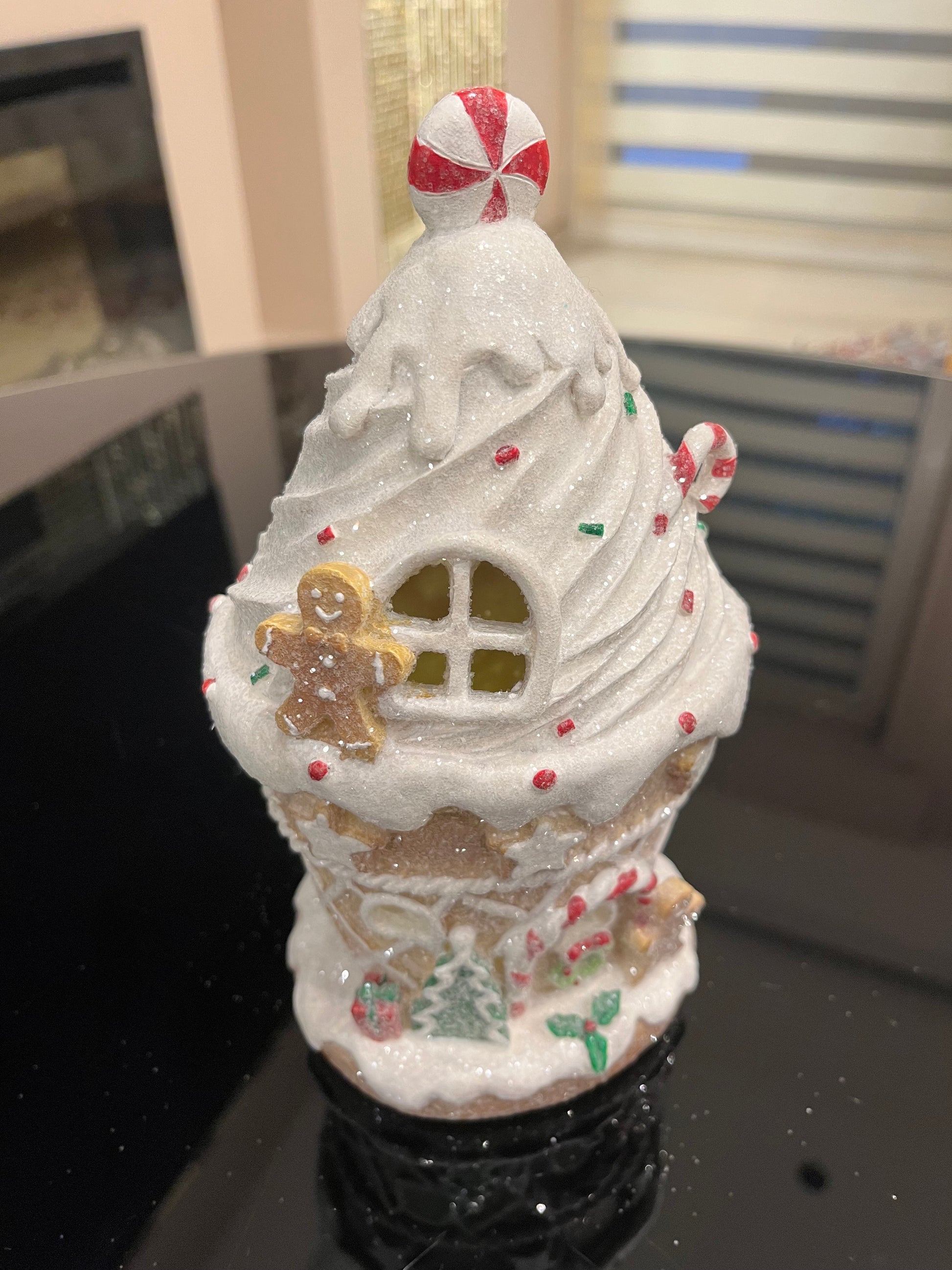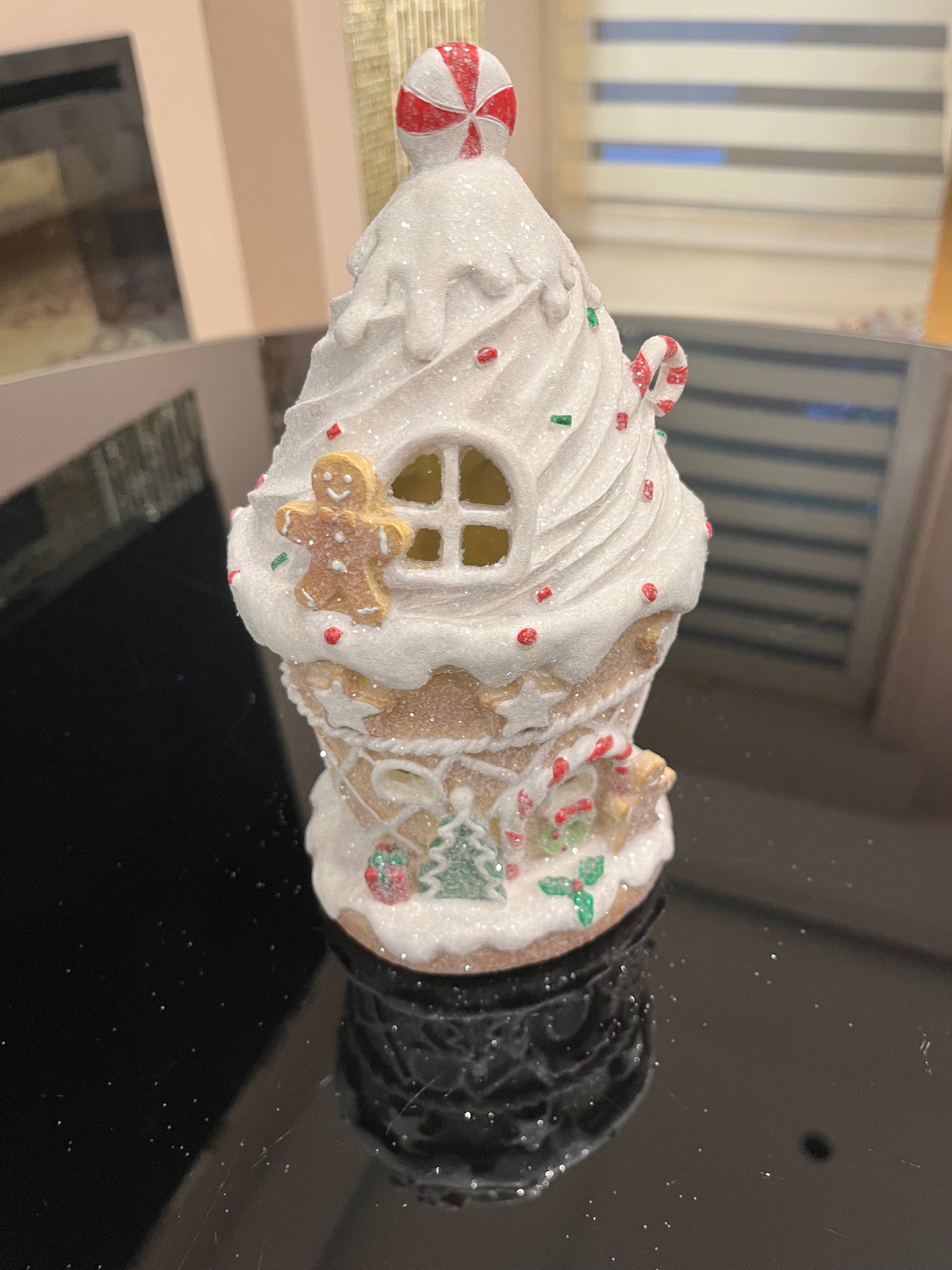 Goldline- LED Cupcake Lebkuchenhaus mit glitzer, 2 Varianten (Batterie betrieben), 12 x 10,5 x 20,8 cm