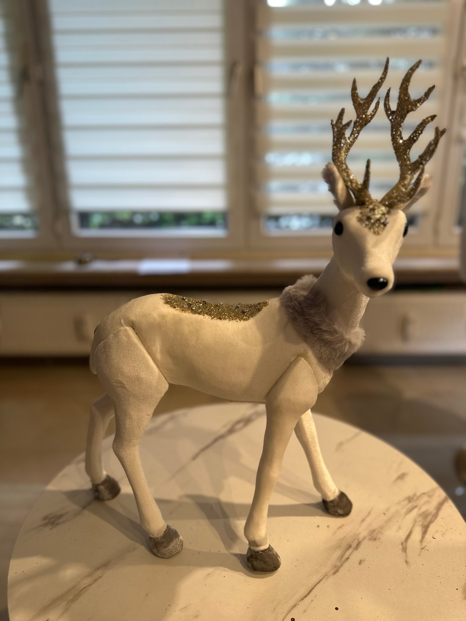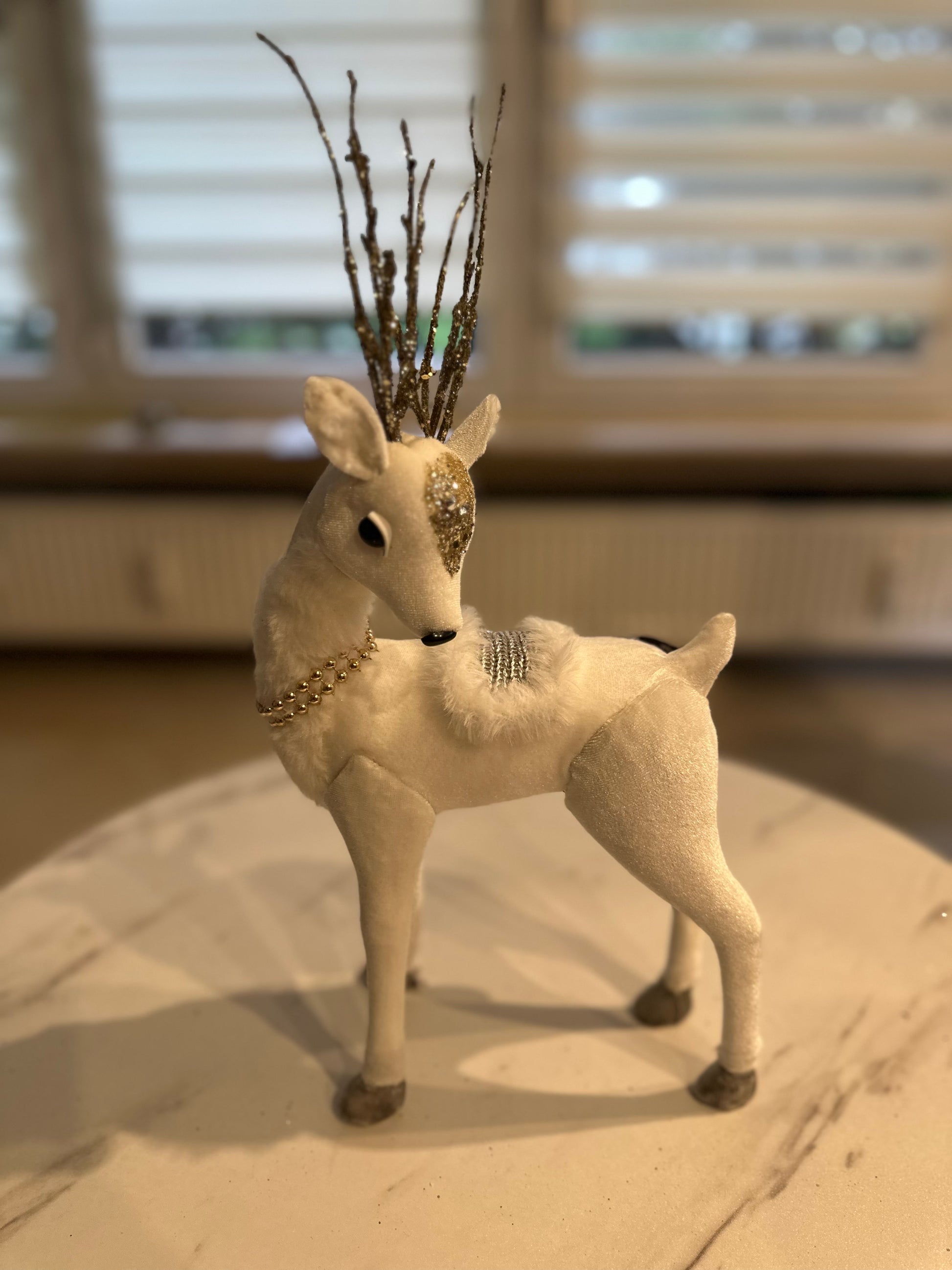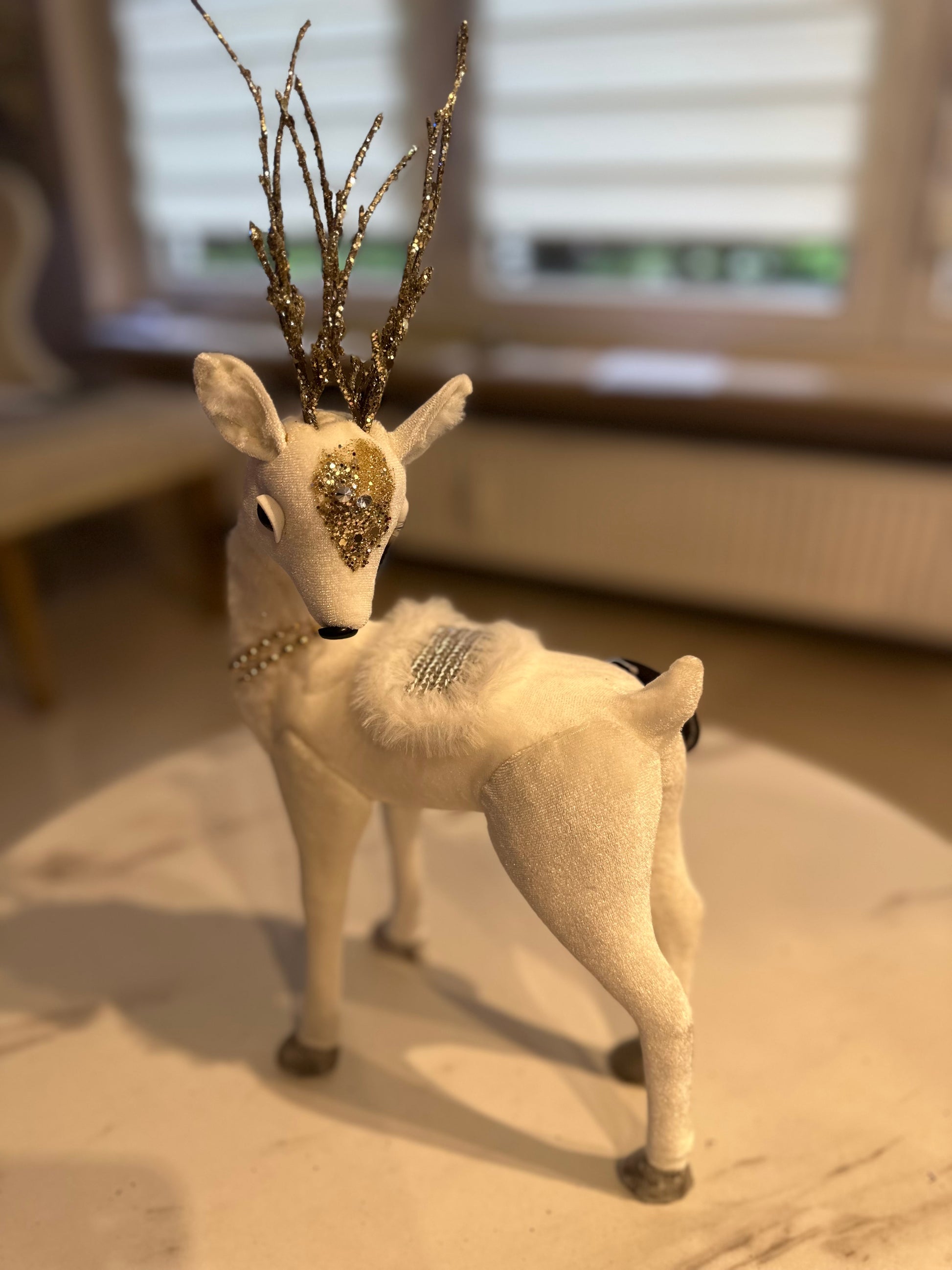 ✅ Edle Rentiere aus Samt in Weiß-Gold
