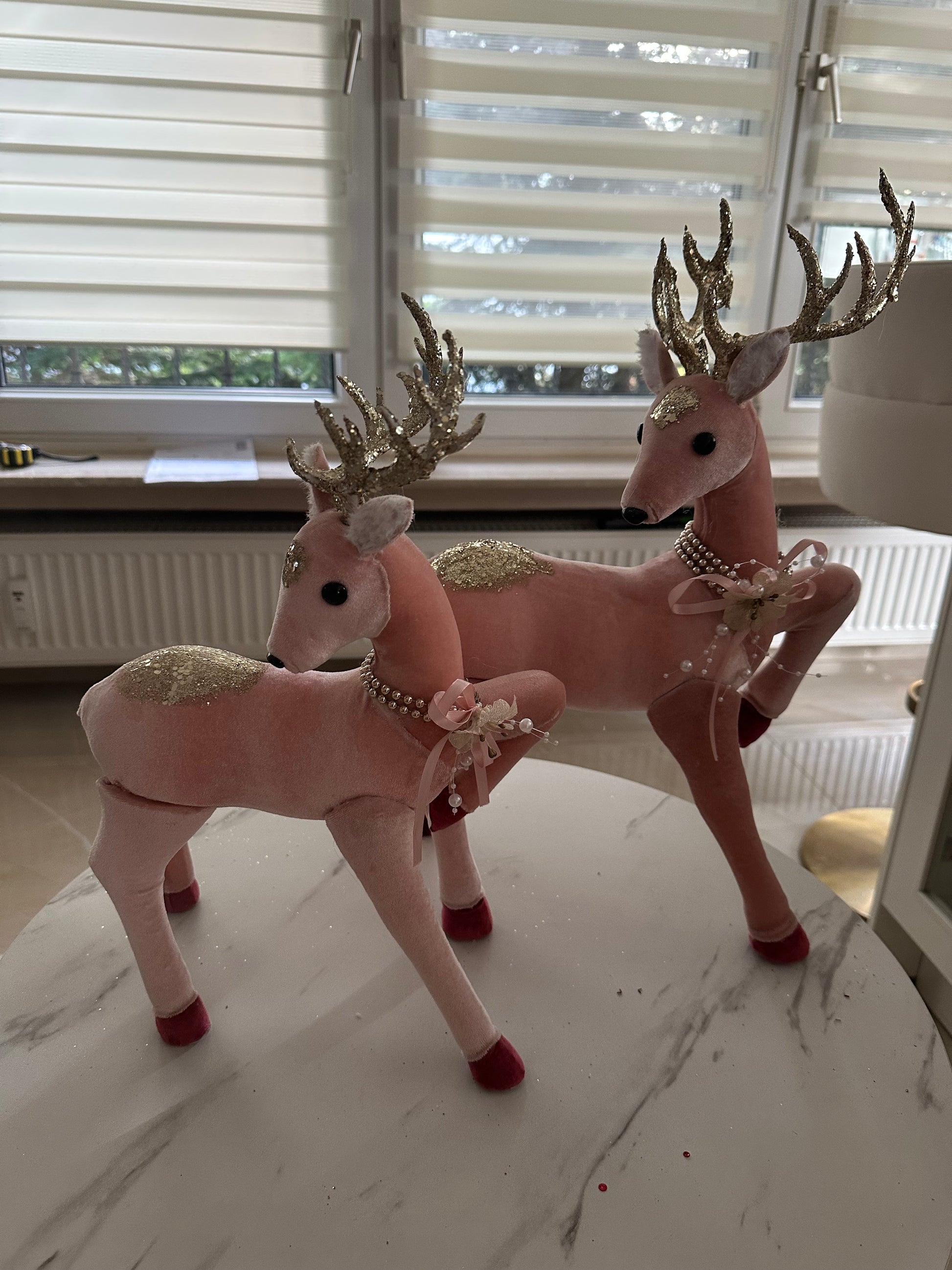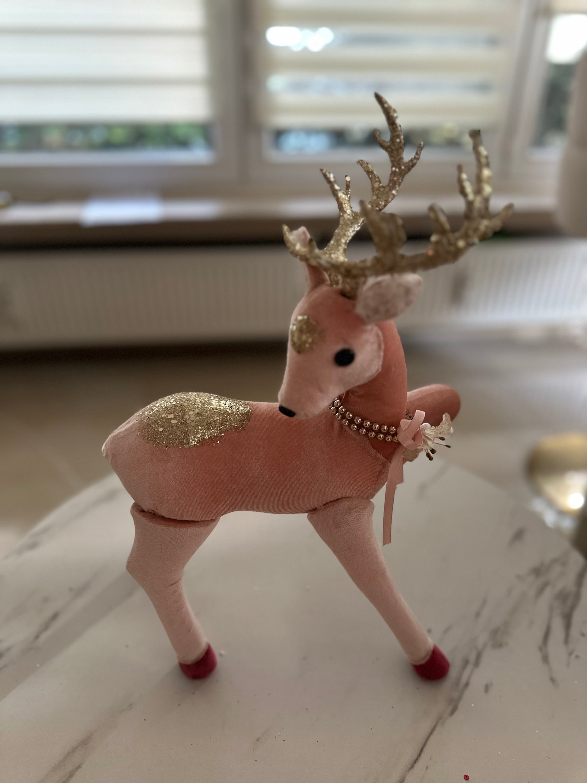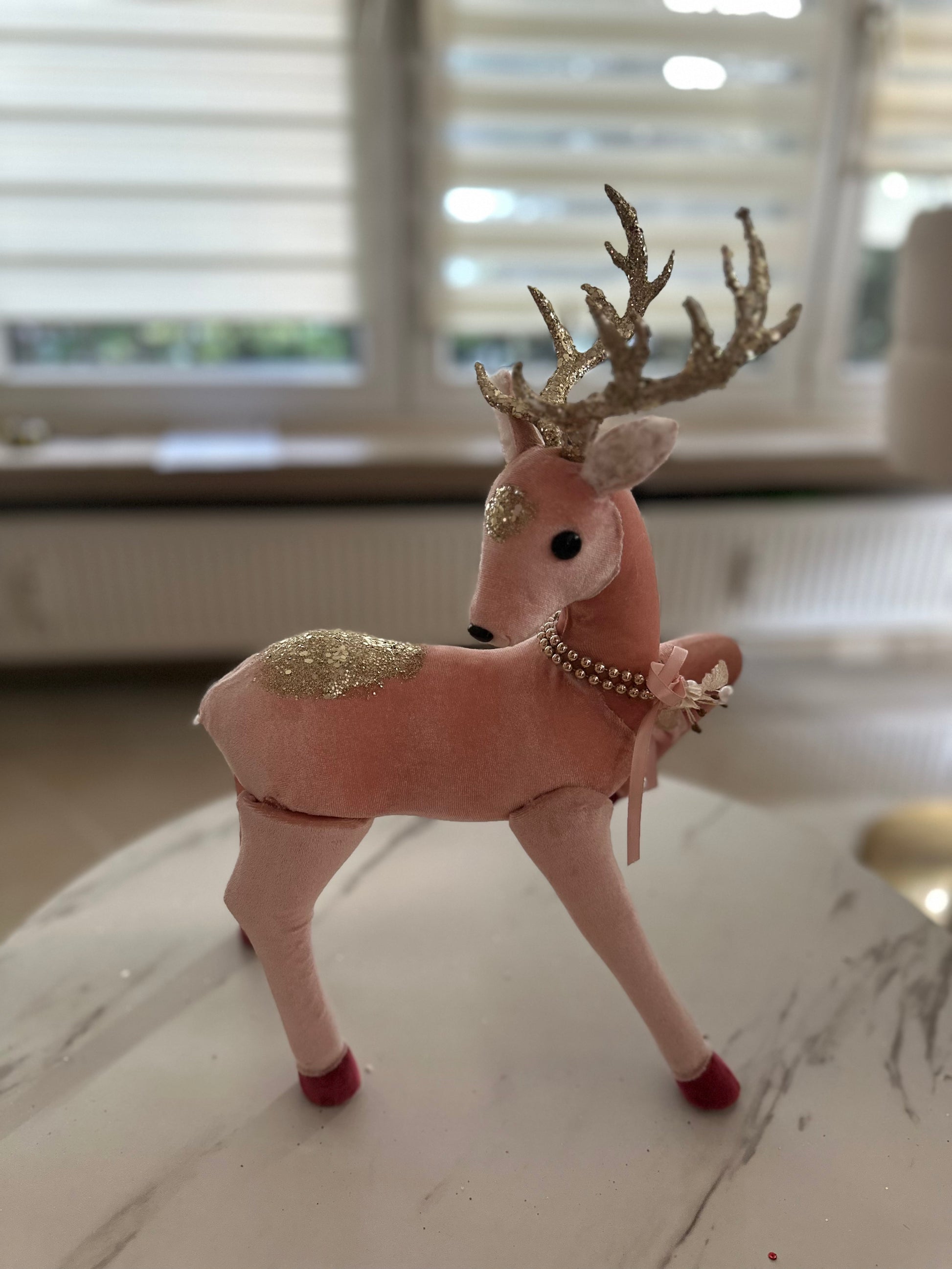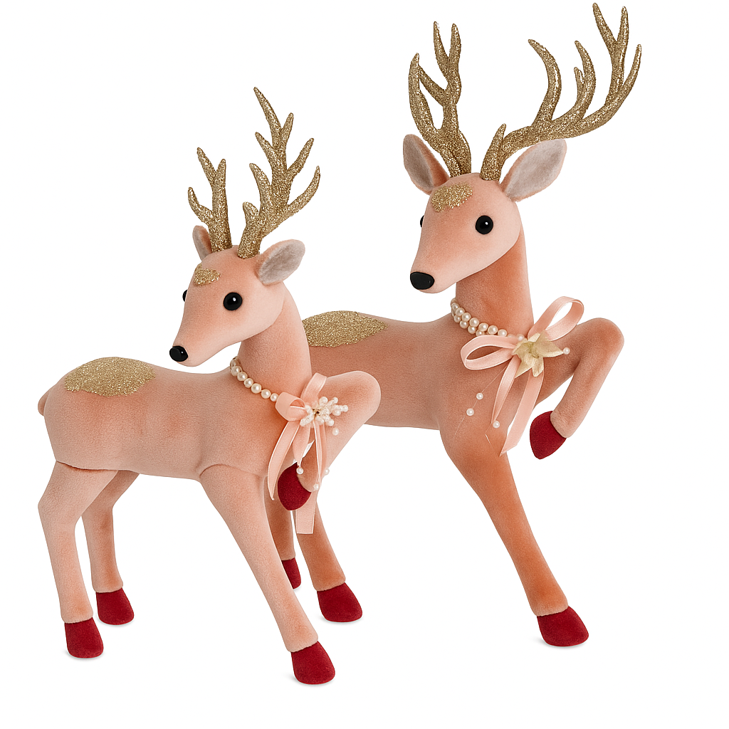✅ Elegante Rentiere aus Samt in Rosa mit goldenen Glitzerakzenten