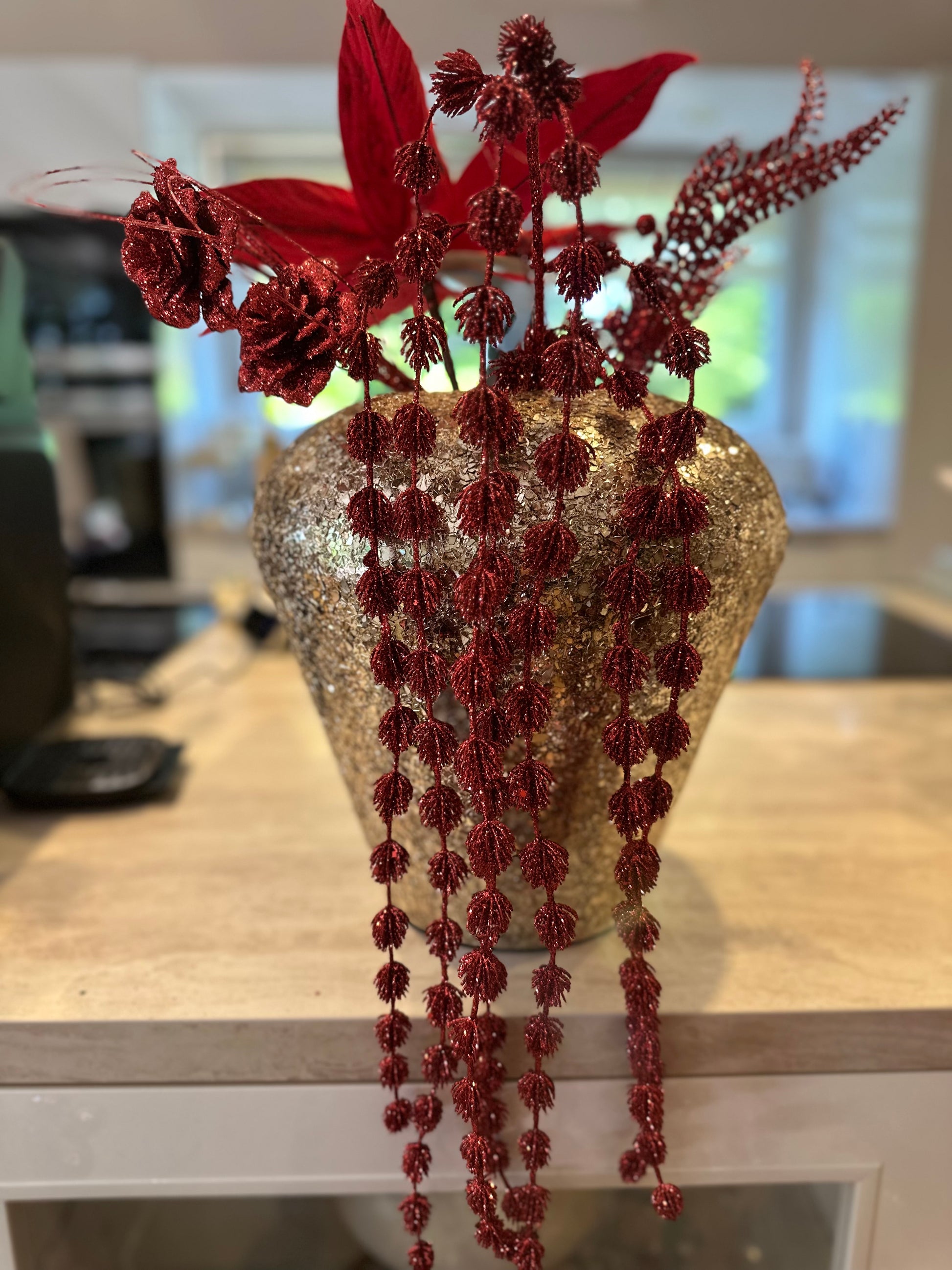 ✅ Hochwertiger Hängezweig in festlichem Rot mit Glitzer