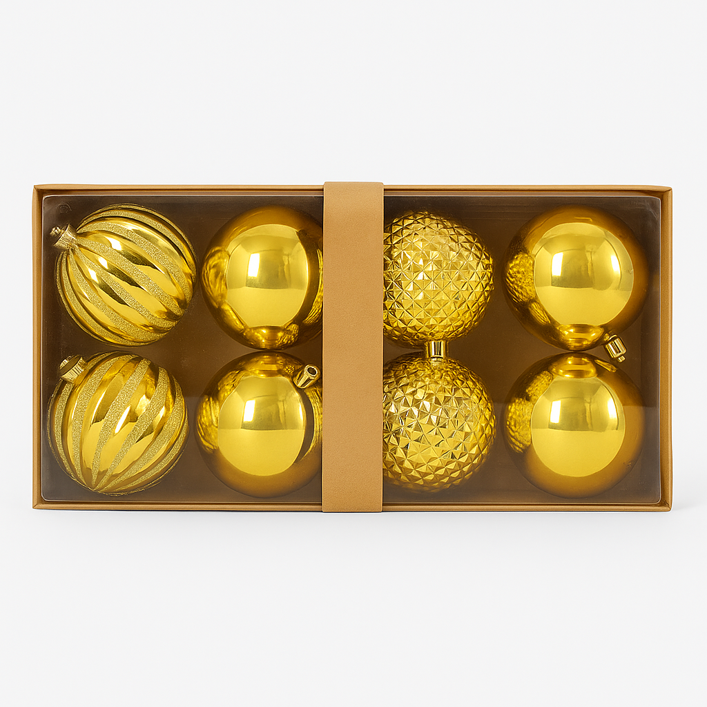 Die abwechslungsreichen Designs – von schlicht glänzend über fein verziert bis hin zu glitzernden Strukturen – verleihen Ihrem Baum Tiefe und Abwechslung, ohne an Eleganz zu verlieren. Die warme Goldfarbe lässt sich perfekt mit klassischen Rot- oder Grüntönen kombinieren, harmoniert aber auch hervorragend mit Weiß, Silber oder modernen Pastellfarben.