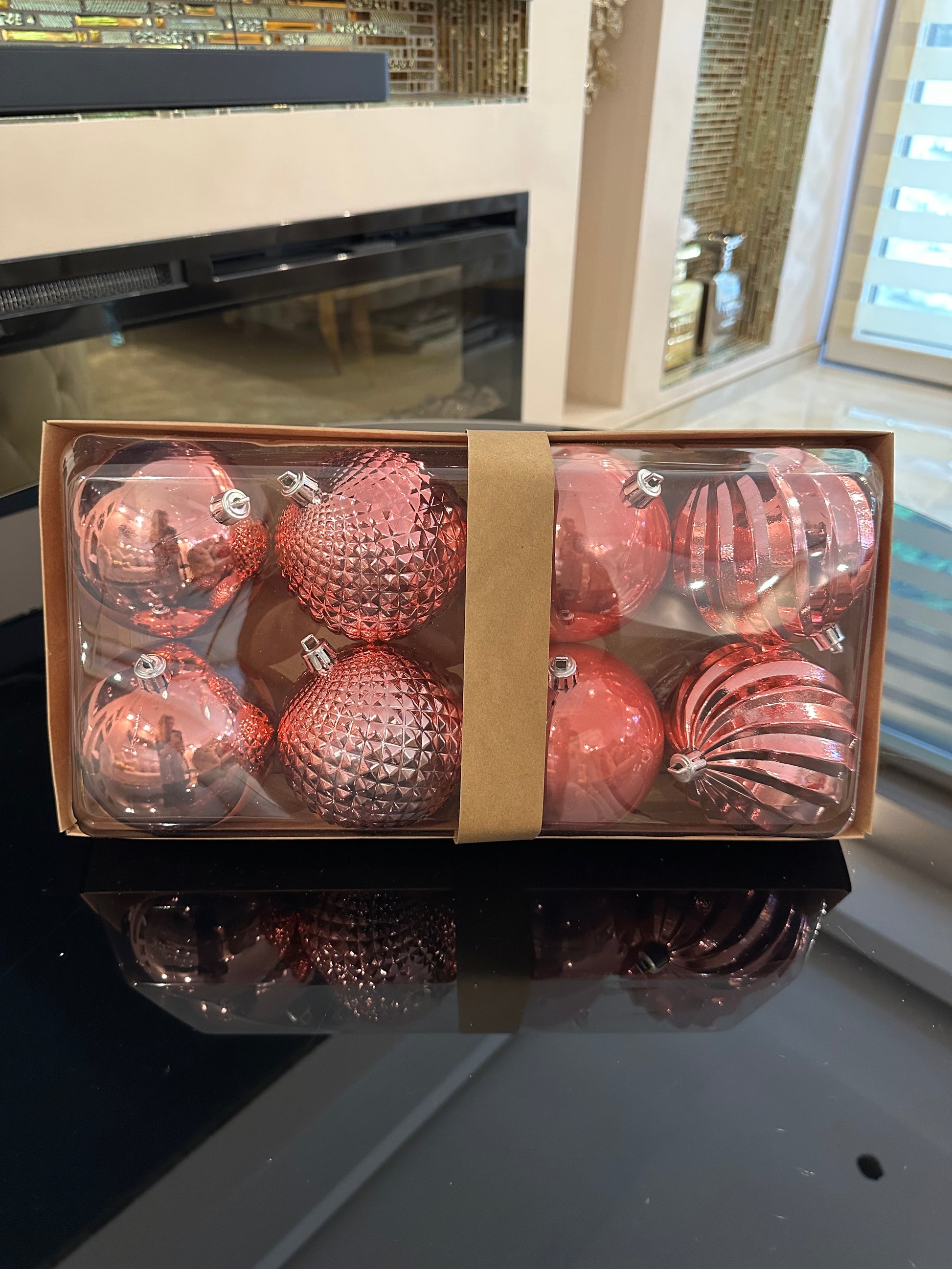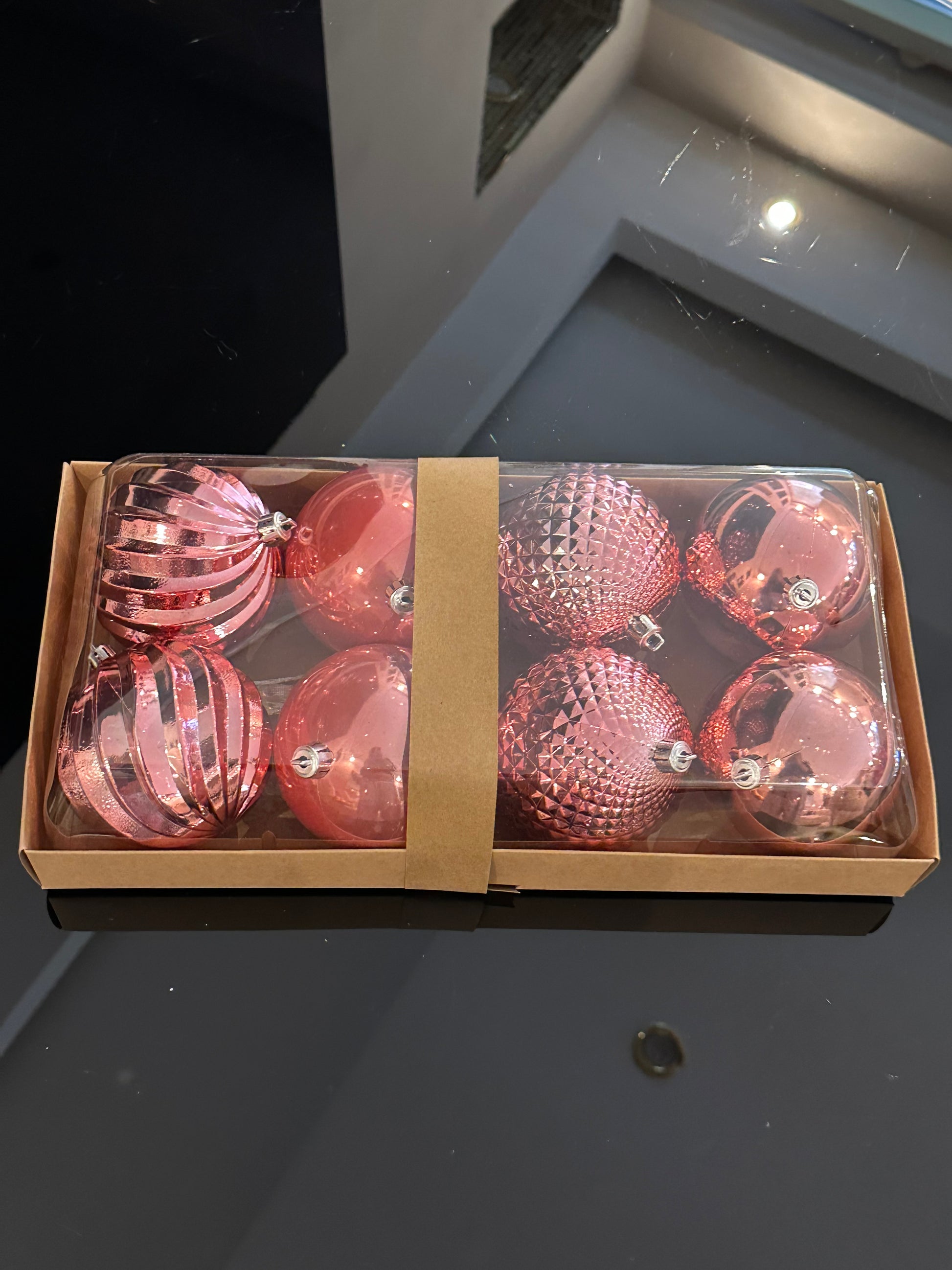 ✅ 8er Set edle Weihnachtskugeln in glänzendem Rosa