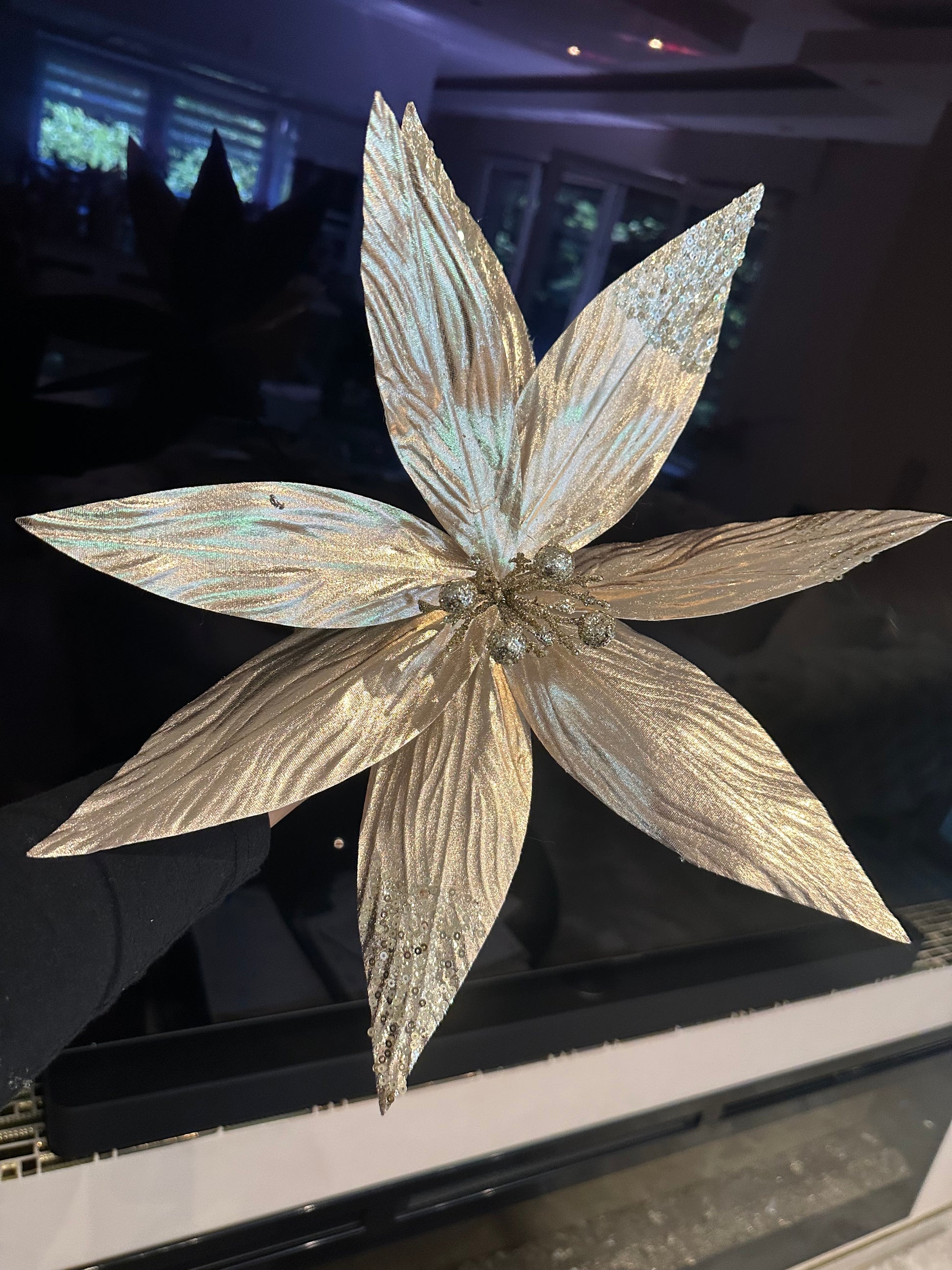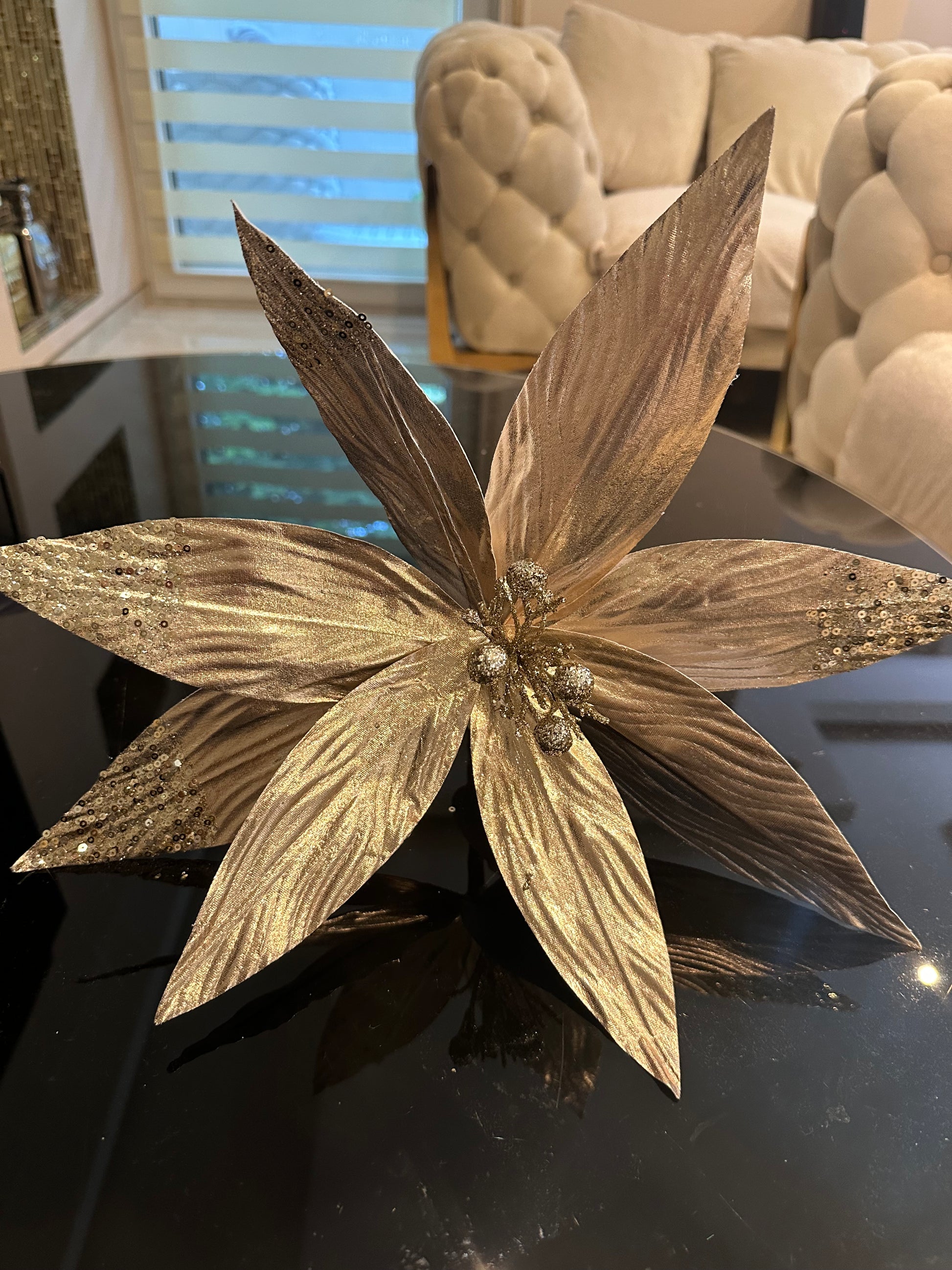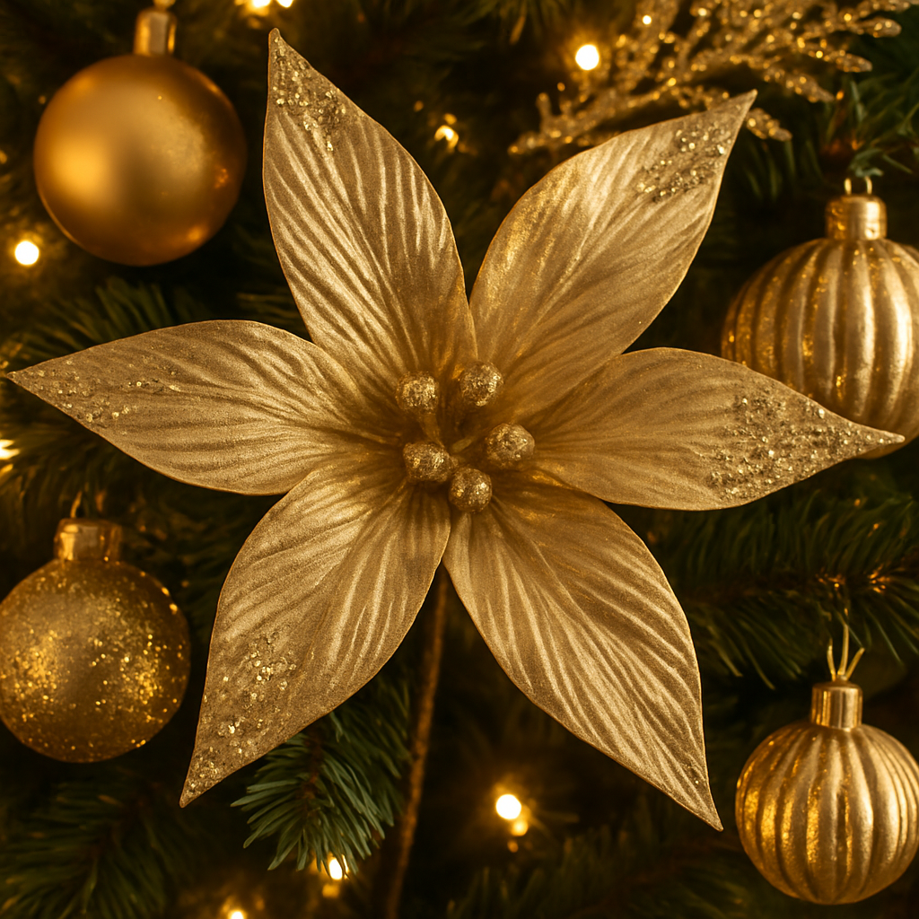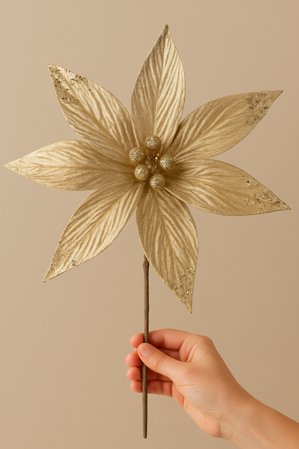Goldline Weihnachtsstern Blume Gold glänzend mit Glitzer – 40 cm