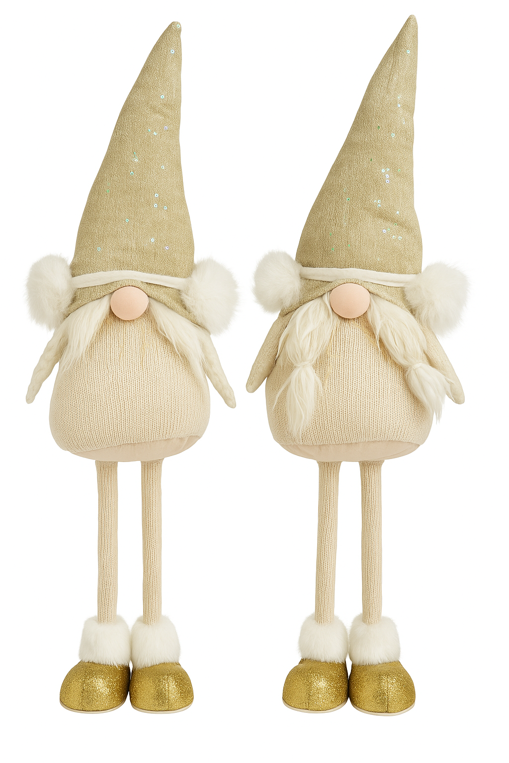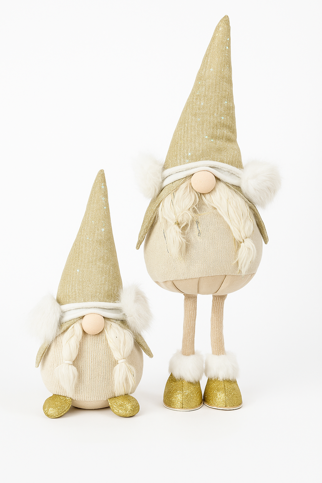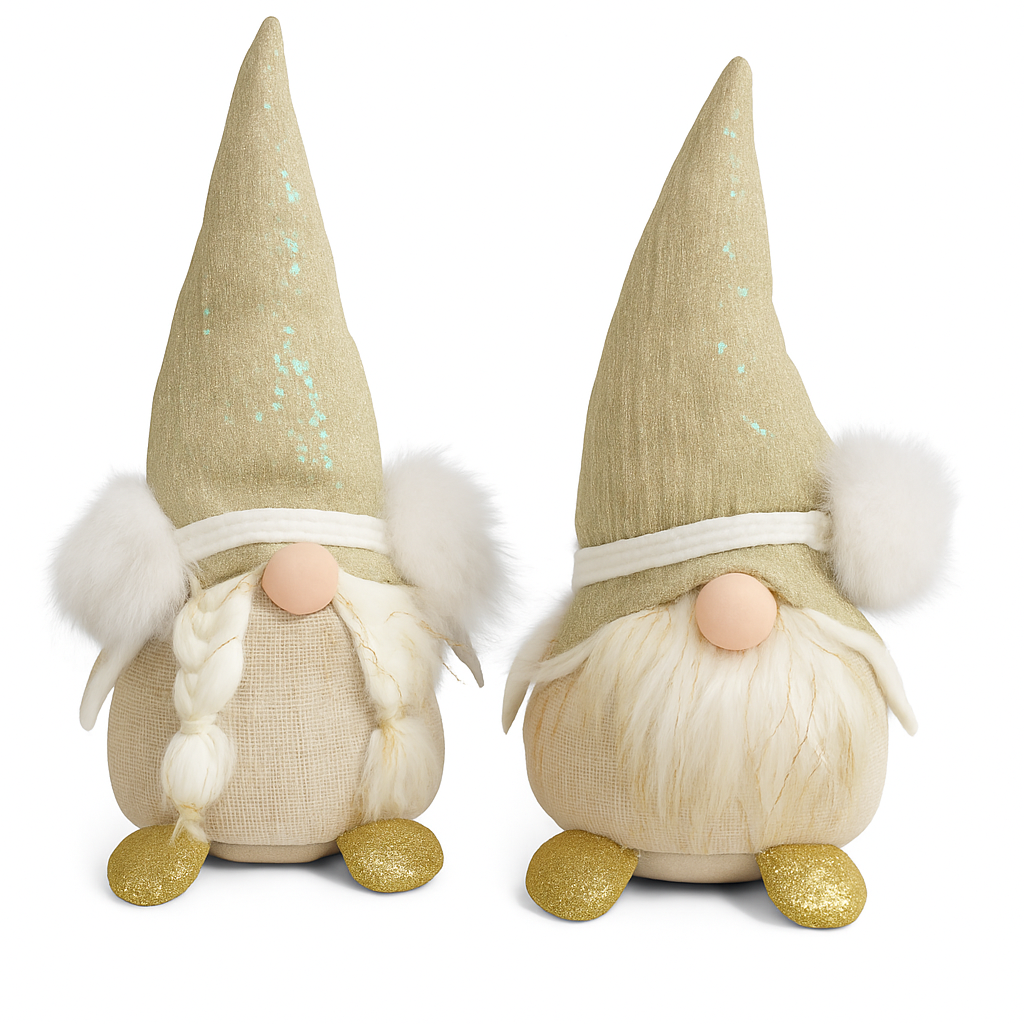 Die Goldline Wichtel in Weiß-Gold sind festliche Hingucker, die durch ihr außergewöhnliches Design sofort auffallen. Mit ihren glitzernden Mützen und den goldenen Glitzerfüßen bringen sie modernen Luxus und weihnachtliche Gemütlichkeit in Ihr Zuhause.