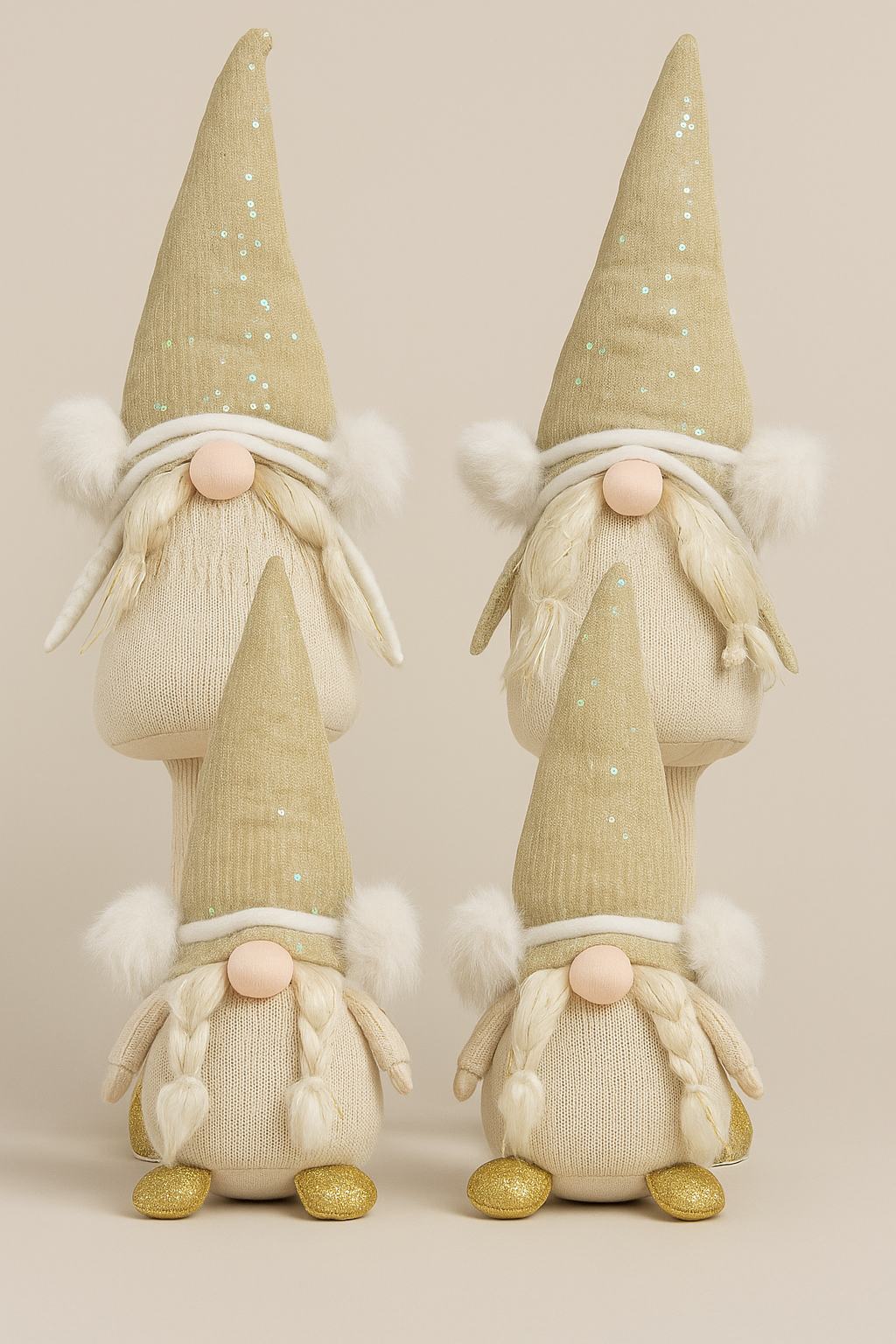 ✅ Wichtel in Weiß-Gold mit glitzernden Mützen & Füßen